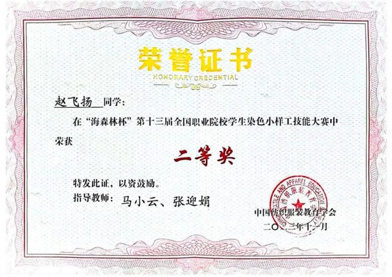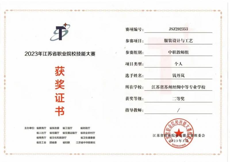 近三年,纺织服装系师生积极参加各级技能大赛,累计获国赛二等奖1次(高职组),省赛一等奖1次、二等奖8次、三等奖7次,市赛一等奖4次、二等奖9次、三等奖22次;参加全国纺织服装类职业院校学生技能大赛共获一等奖5次、二等奖9次、三等奖18次、团体一等奖1次、团体二等奖2次。