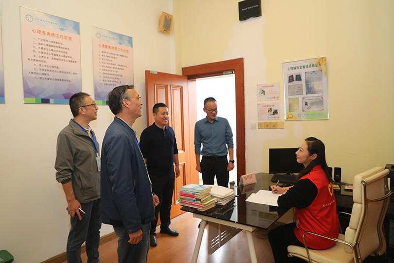 两位督学首先进入食堂,重点检查了员工健康证、陪餐记录表、食品仓库的规范化管理等情。随后,两位督学与学生、教师进行访谈,了解学校在学生心理健康教育的具体举措,同时还检查了校心理咨询室。最后,两位督学仔细查阅了台账资料,与相关科室人员进行了深入交流。