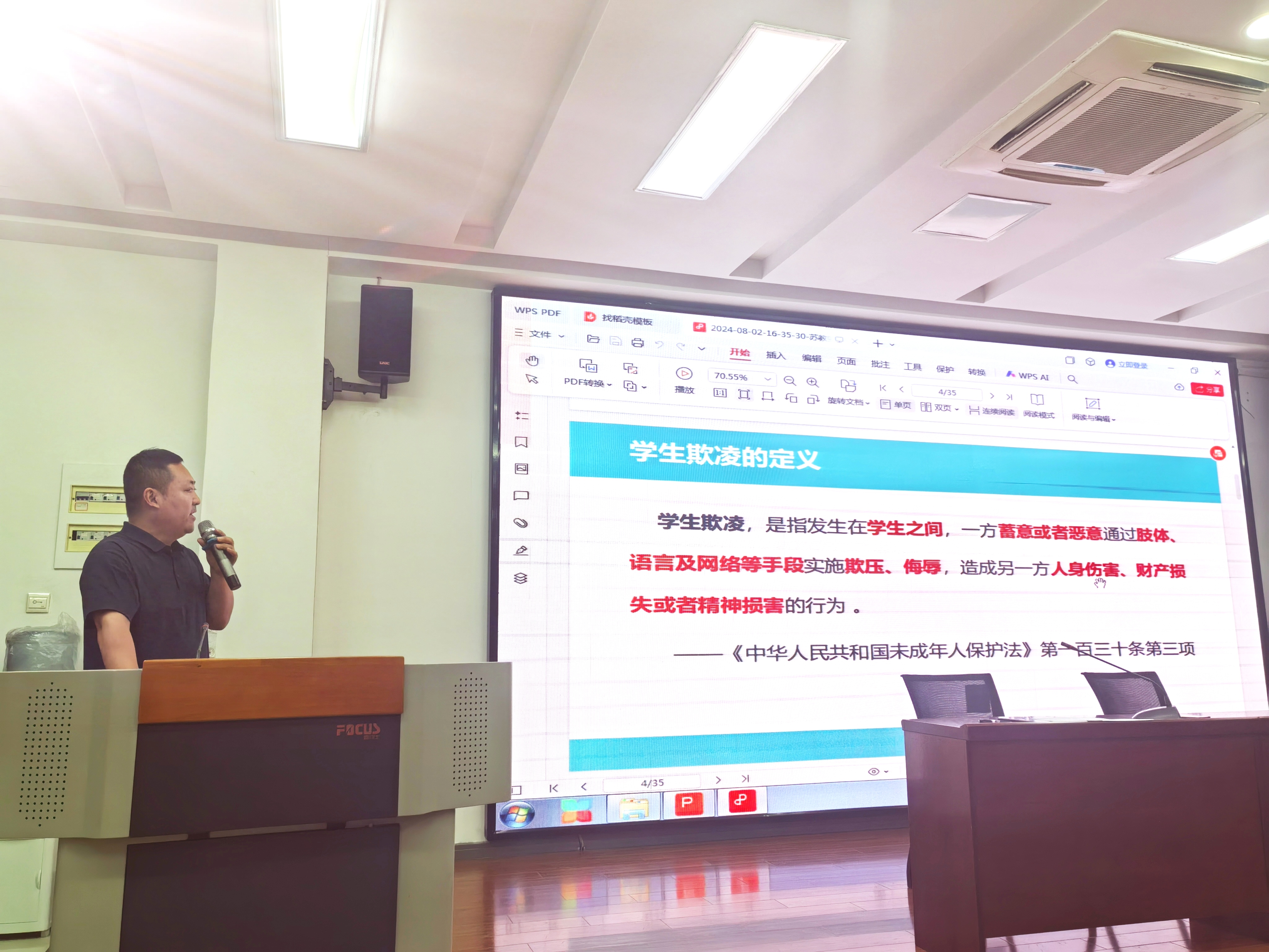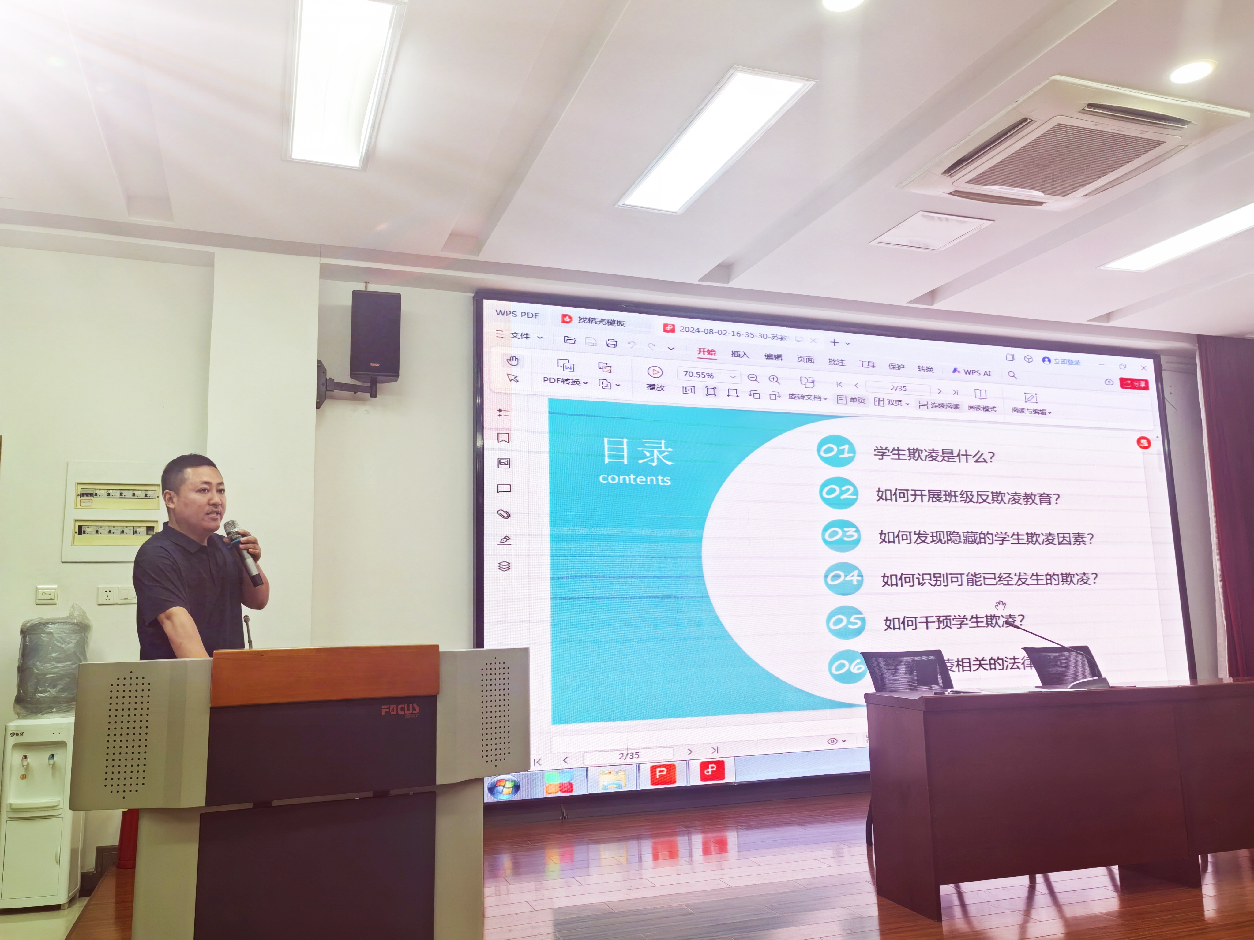 随后,德育处主任谢启永针对“学生欺凌”的话题展开专题讲座。他提出要强化养成教育,树立学生规矩意识,将规矩、道理与措施相结合,对欺凌、抽烟、打架等行为零容忍,同时向班主任明确了违纪处理流程,便于班主任开展班级管理工作。