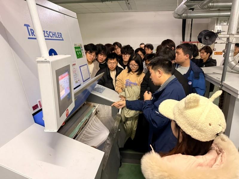 下午再次集结,前往第三站——苏州世祥生物纤维有限公司。在生产车间内,工作人员为师生们系统介绍了企业产品的完整生产流程与关键设备运作情况。随后,企业领导小组与学校师生进行了座谈交流,针对同学们在实习过程中关心的一系列问题,进行了细致解答和深入交流。